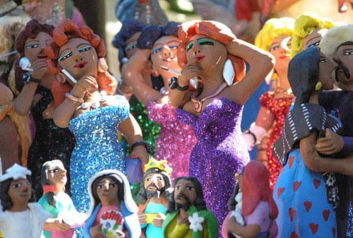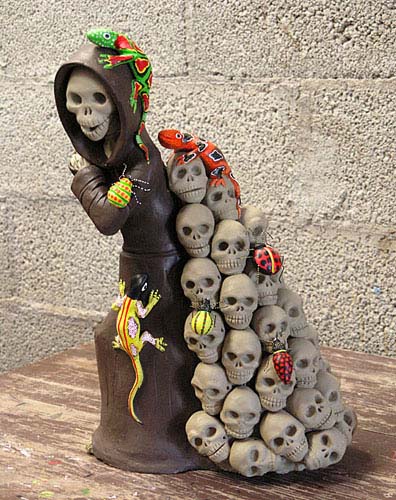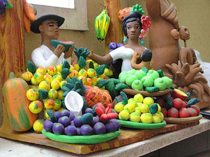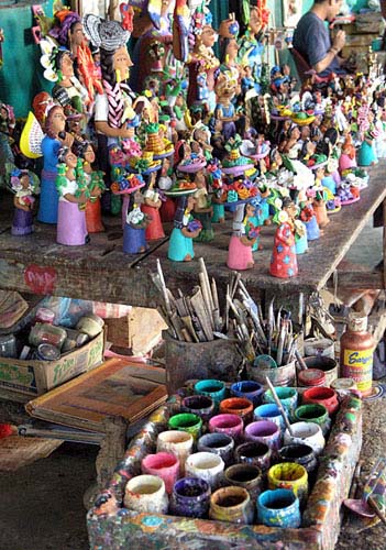 Our first stop is Ocotlan, where the four Aguilar sisters each have their separate workshops.They all create clay figures in a somewhat similar style, but each specializes in her own subject matter.