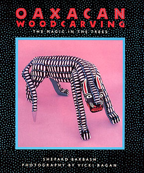 On to San Martin Tilcajete, one of the villages where fantastic creatures are coaxed from copal wood then flamboyantly painted. (These towns all have two-part names -- the first a Spanish saint and the second an Indian name.) We visit three carvers we know from previous trips: Estében Hernandez, Vicente Hernandez, and Margarito Melchor, whose famous cat adorns the cover of Shepard Barbash's definitive book, Oaxacan Woodcarving. All are gracious and hospitable, offering us mescal while the children run to get us chairs to sit on. Jane receives birthday hugs from everyone. |