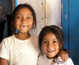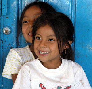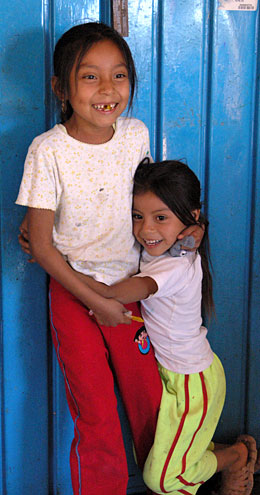 | Margarito's two daughters, Rosario and Anna, are giggly, outgoing, and utterly delightful, and they love our fruit candy that turns their tongues yellow and blue. They certainly take the prize for most photogenic subjects of the day. | ||||