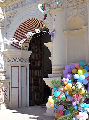 After dinner, Jane and Suzy attend midnight mass at Santo Domingo while the rest of us head down to the zocalo to see the more public manifestations of the posada tradition. There are neighborhood floats with children taking the parts of Mary and Joseph, and as always, live music everywhere, from formal performances on a stage in the zocalo to impromptu street musicians. | |||||||