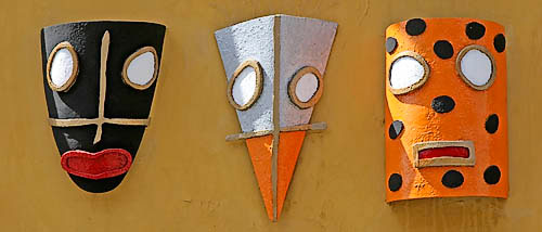 logo of three masks on the wall outside. It looks like the sort of place