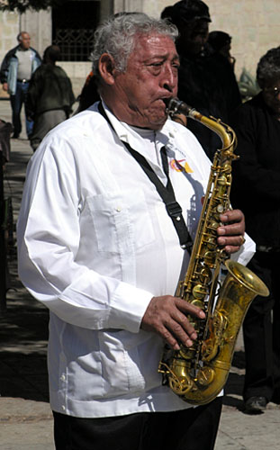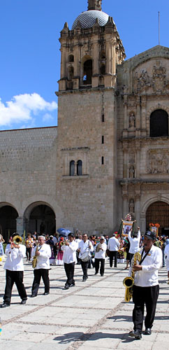 They also tell us there is a procession at 11, from Santo Domingo to the zocalo, with musicians and native costumes. This band is just the first of many we will enjoy over the next week. | ||||||