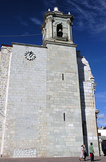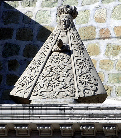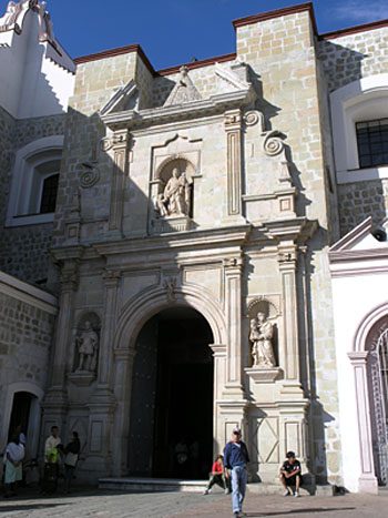 Monday 20 December Today we visit the church of La Soledad and, a short walk away, the Tamayo Museum. La Virgen de la Soledad (the Virgin of Solitude) is the patron saint of Oaxaca and you see her triangular form all over the city. The legend says that in 1620 a mule train discovered a strange mule in its midst. The animal would not move, and when prodded, it fell over and died. The statue of the Virgin was discovered in its pack, whereupon a shrine was built on the spot to commemorate the miracle. |